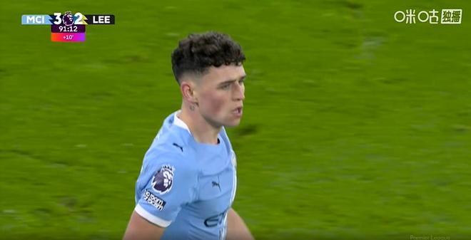 第91分钟,又是福登,禁区内右侧拿球连续横向盘带后一脚低射破门,帮助曼城再次将比分超出。